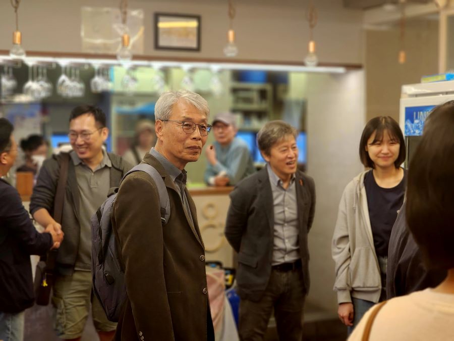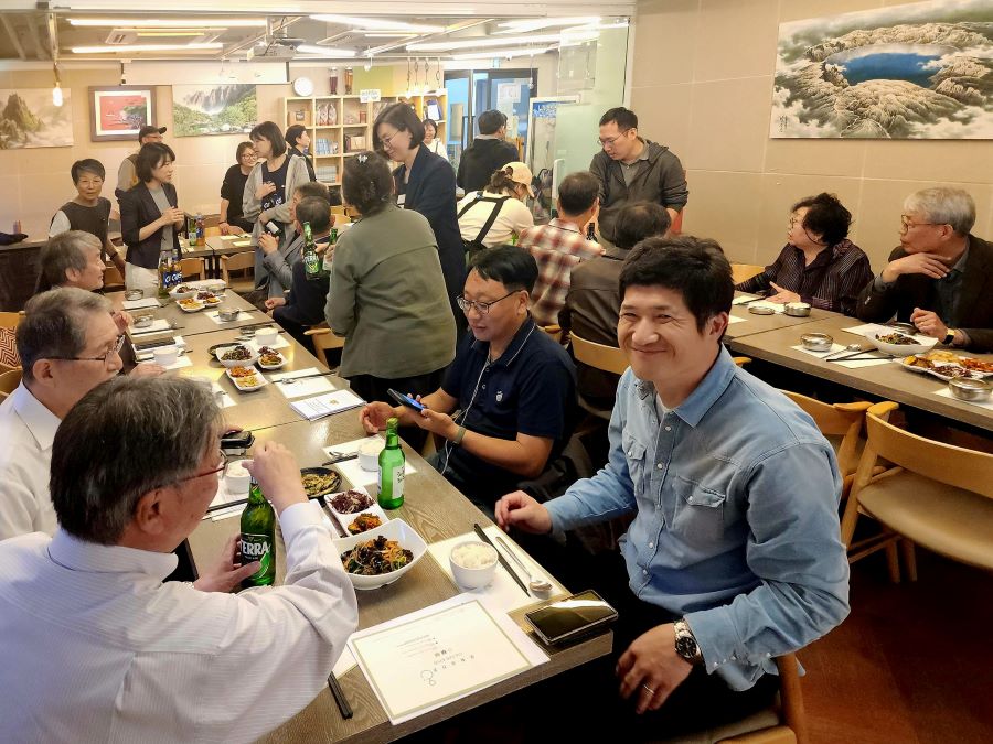 한국 측 단체 몽당연필, 우리학교와 아이들을 지키는 시민모임(이하 시민모임), 조선학교와 함께하는 시민모임 ‘봄’ (이하 봄), 김복동의 희망, 그리고 지구촌동포연대 KIN등 5개 단체가 마련한 환영회가 4월 18일 저녁에 종로의 작은 만찬장에서 열렸습니다. 그동안 온라인으로만 회의를 했던 사람들이 직접 만나 같이 먹고 마시며 즐겁게 이야기 나누면서 조금씩 친근감을 높였습니다.